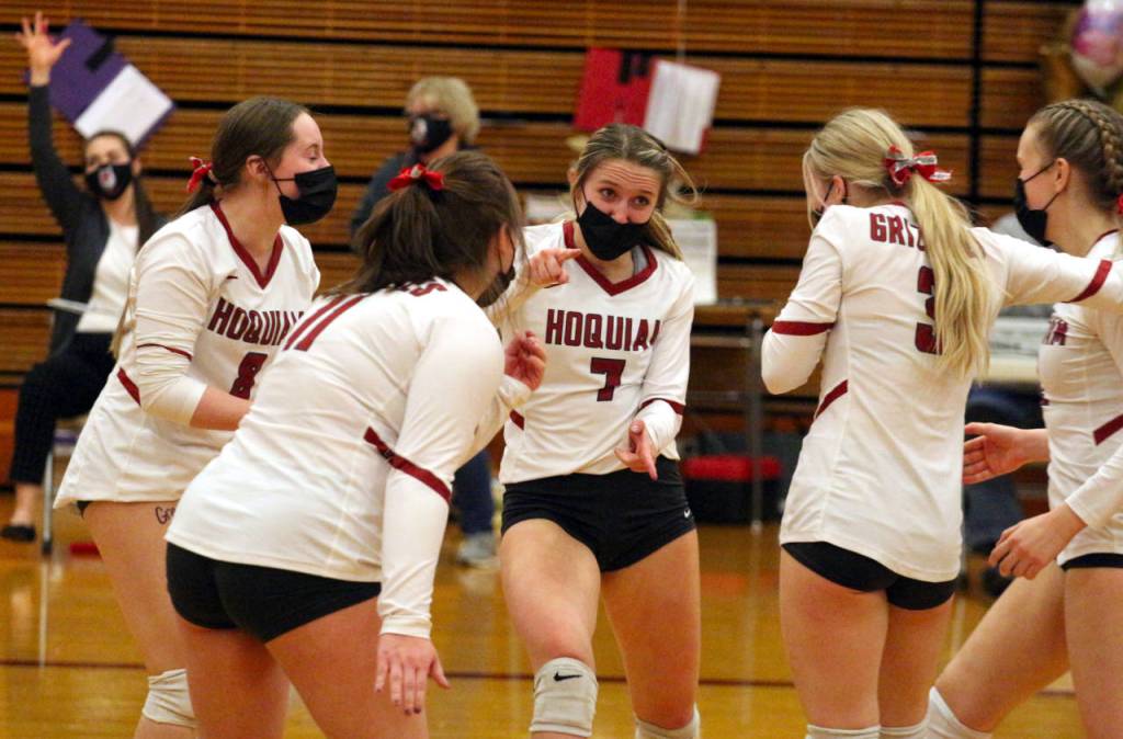 Three Hoquiam Grizzlies were named to the First Team after a run in the district tournament that saw the Grizzlies finish fourth in the district. Senior outside hitter Sharaya Brydon and a pair of sophomores — setter Ella Folkers and middle blocker Chloe Kennedy — were named to the First Team.