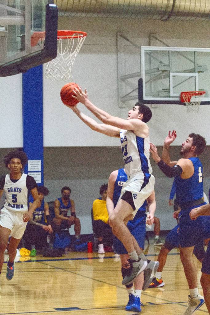 Tied at 37-37 in the final minutes of the first half, another Grays Harbor run would give the Chokers some breathing room heading into halftime. The Chokers outscored Centralia 8-2, capped by a Tristan Schoepf layup off a long, lead break pass from Legleu, to take a 45-39 lead into the half.