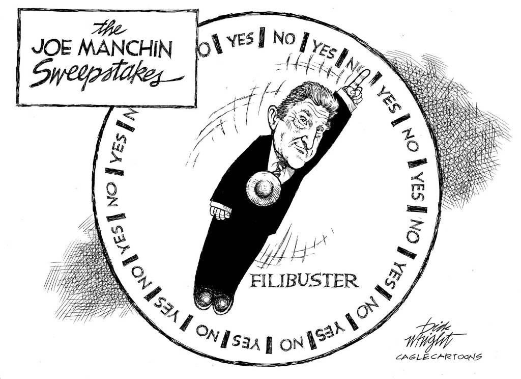 Which brings us to Manchin, sometimes a deciding Democratic vote and therefore arguably the most influential senator in the country. He’s also the Democrat whom Democrats most love to hate for his obstruction to President Biden’s agenda.