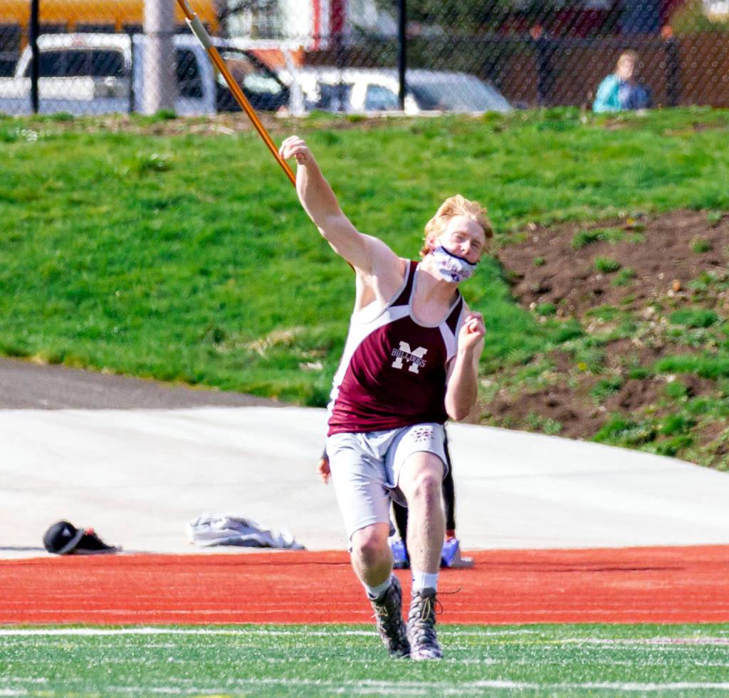 The senior won district titles in three separate events — the 300-meter hurdles, the discus and the javelin — doing so in remarkable fashion. Hollatz ran a 46.52 in the hurdles, hurled the discus 124 feet, seven inches and threw the javelin 177-11 in his three event victories. All marks were personal-bests for Hollatz and his winning javelin toss was a mere six inches off the Montesano school record.