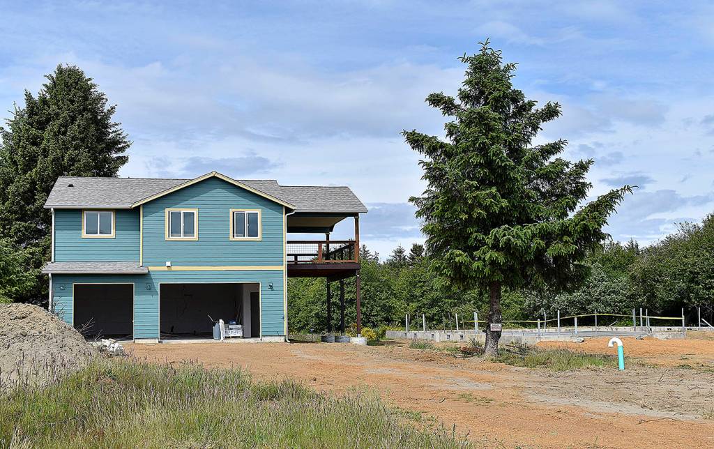 A two-man crew works on a new single family home on Fairwood Drive SW in Ocean Shores, one of dozens of new builds popping up in the city every month.