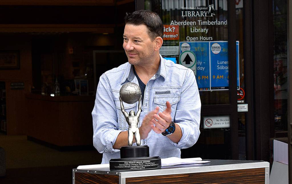 Award-winning author Jeff Burlingame recalled his humble South Aberdeen beginnings on Saturday during the dedication of his star on the Aberdeen Walk of Fame on Market Street in front of the Aberdeen Timberland Library.