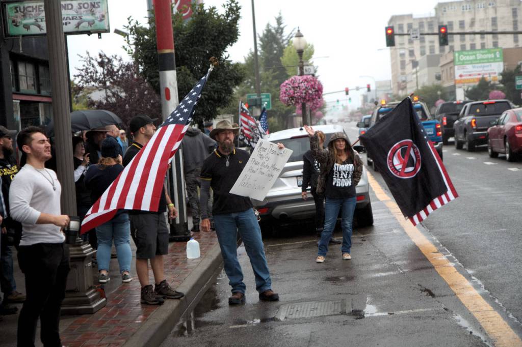 Members of the group flew United States and anti-Antifa flags, held signs that echoed Sucher’s sentiments, and represented locals, former residents and often vilified right-wing groups.