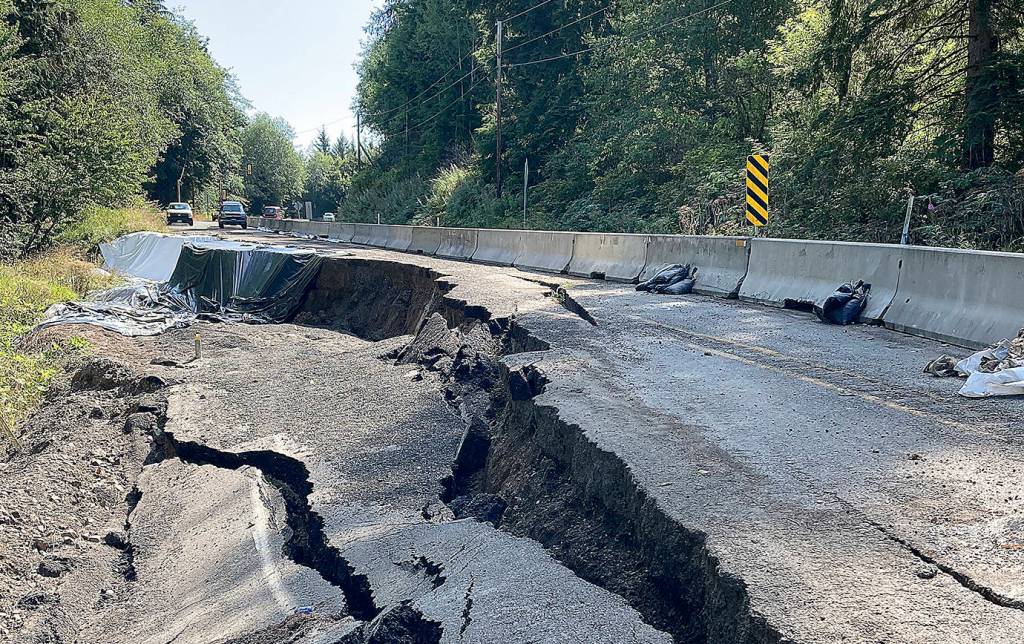 The roadway near milepost 78 south of Cosmopolis has been down to one lane alternating traffic since a major slide took out the northbound lane in January 2020.