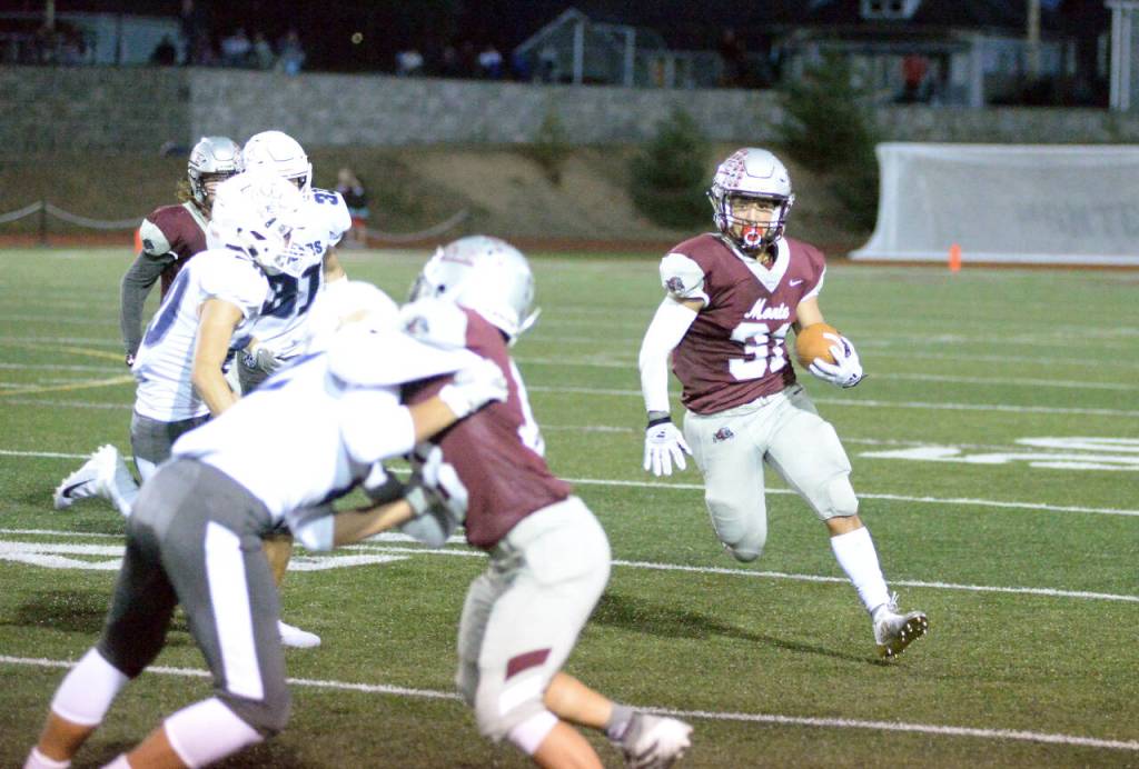 RYAN SPARKS | THE DAILY WORLD Montesano running back Isaiah Pierce (31) carries the football against Cascade Christian on Friday at Jack Rottle Field in Montesano.