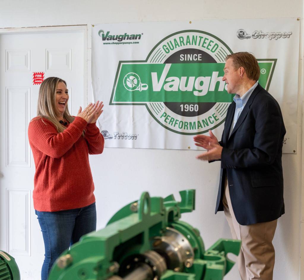 The award was presented to Stacie Vaughan, company CFO. She is part of the fourth generation of her family to run their namesake manufacturer of chopper pumps. She and her brother Jesse Vaughan are two of the 10 descendants of founder Jim Vaughan, who are continuing the growth of the company their great-grandfather founded in 1960.