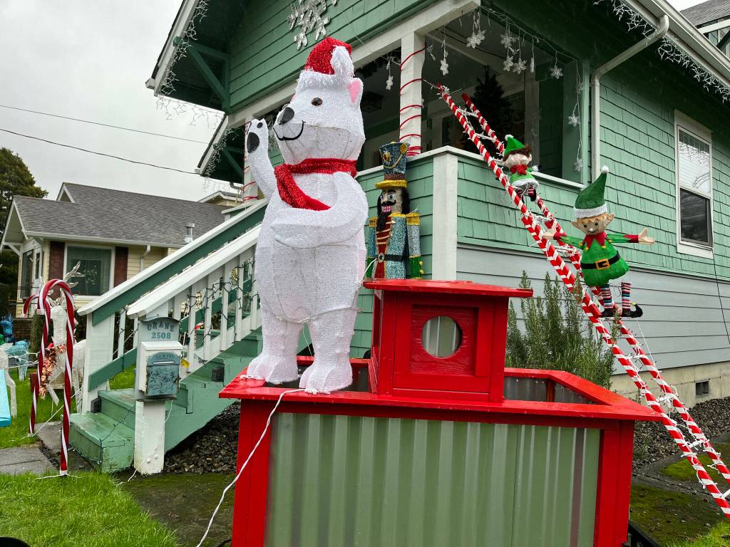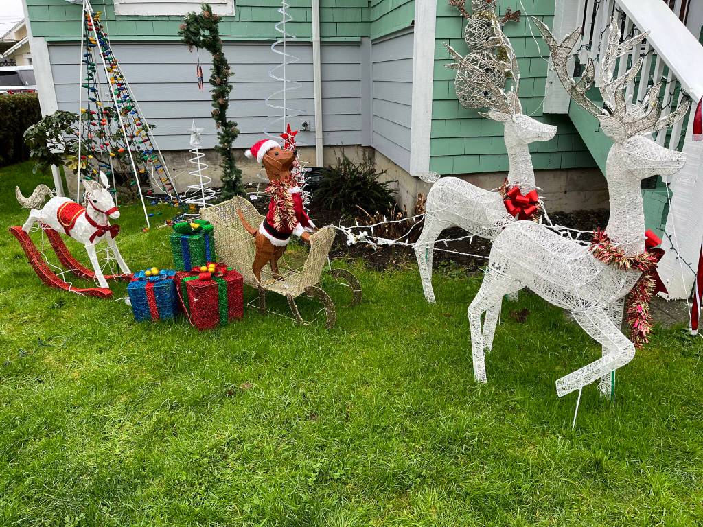 While this is Crane’s first year decorating in Hoquiam, she’s been decorating for about 15 years. She last lived for 14 years in Paoli, Indiana — a small town that’s about 60 miles northwest of Louisville, Kentucky — where she said her neighbors would stop and ask about her yuletide-filled yard.