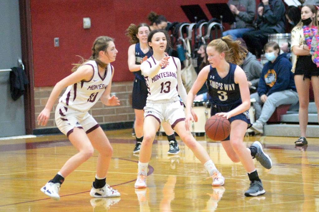 When the Knights did manage to get into its half-court offense, they didn’t find much success against Monte’s quick-reacting zone defense, managing just two field goals in the period on a bucket by Izzy Hill and a three from Hannah Irwin with 15 seconds left in the first half.