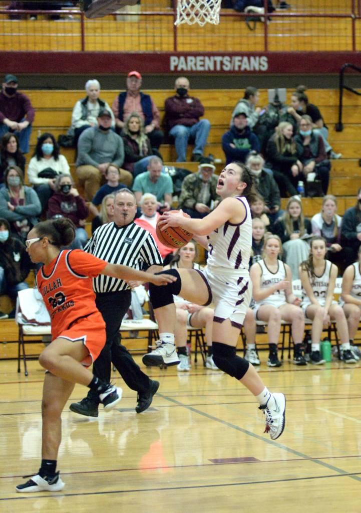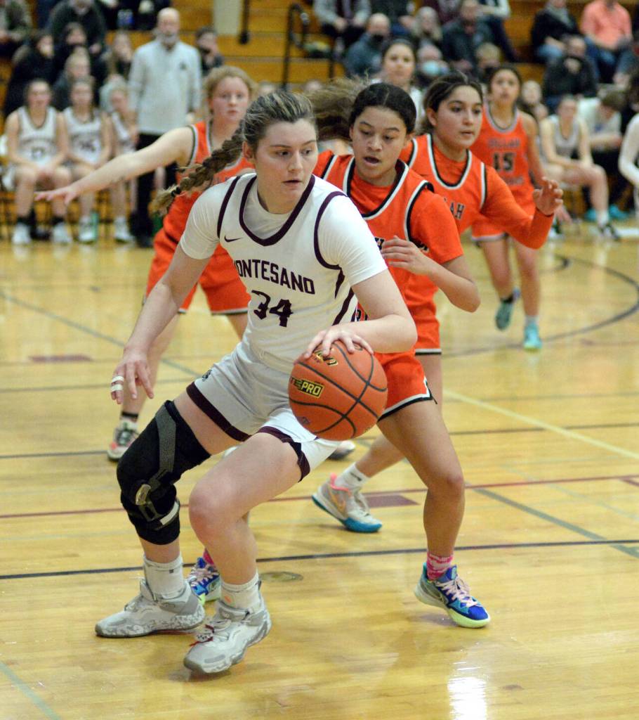 “I couldn’t be prouder of these girls,” Montesano head coach Mark Mansfield said, noting the season-long discussions he and his coaching staff have had with the team about being mentally tough during times of strife. “Everyday it’s something new. Today, we get the emotional lift of McKynnlie coming back and then we’re in huge foul trouble, which is something we haven’t faced all year. … People had to step up and everybody just played hard.”