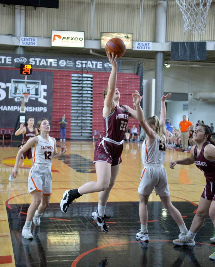 Lisherness opened the third quarter with a bucket to put Montesano up 23-21, but Cashmere embarked on a 9-0 run capped by a fast-break basket by Ellie Bessonette to take a 29-23 lead with 3:16 left in the period.