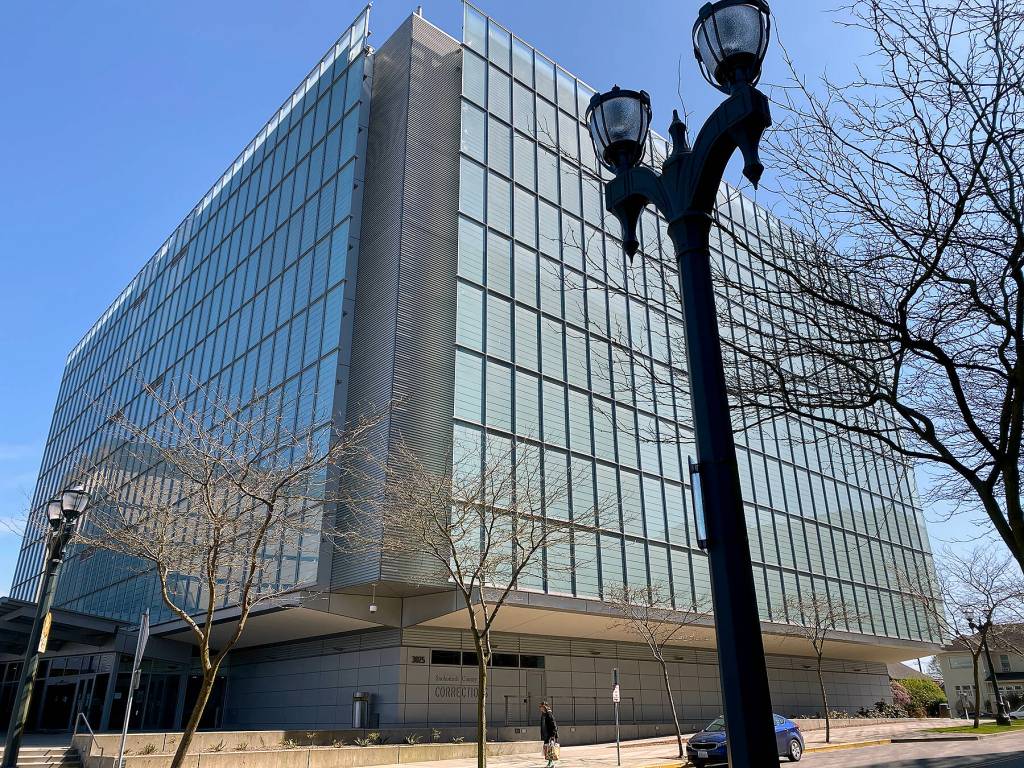 The Snohomish County Jail has room for over 1,000 people. In early March 2020, the jail population hovered around 800. By later that month, it had fallen to 560 as the pandemic quickly shifted booking priorities. And on average this year, about 48 percent of the total capacity has been occupied, said Courtney O’Keefe, a sheriff’s office spokesperson.