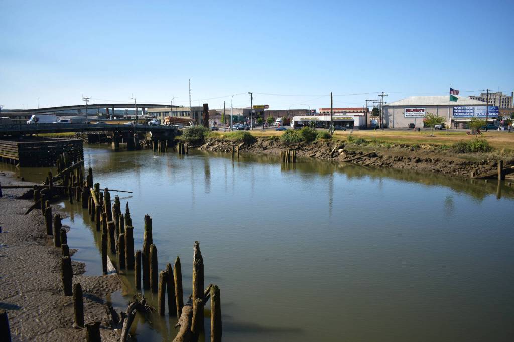 A southwest view from Wishkah Street Bridge shows the Wishkah River, the Heron Street Bridge and Zelasko Park. In the next year or so, the North Shore Levee will start to be constructed, which would protect nearby residents, plus 3,100 properties and 994 businesses.