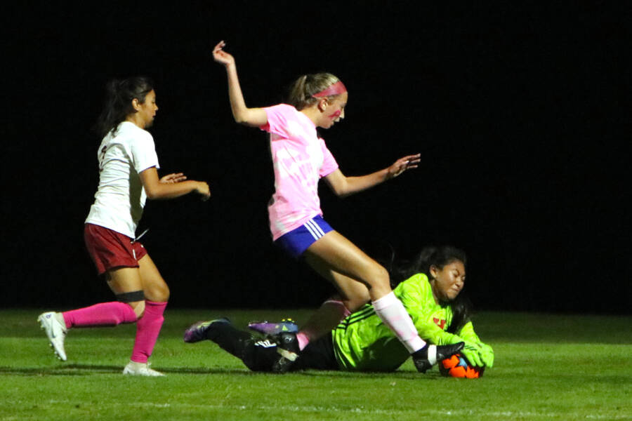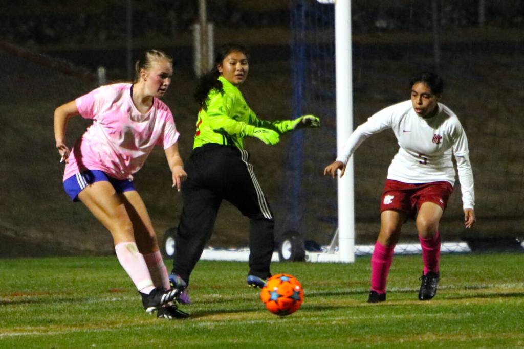 Senior Ruby Wells was commended by Johnson for stepping into the keeper’s role and making some plays against the high-octane Eagles offense, including making a diving save on an Elma penalty kick.