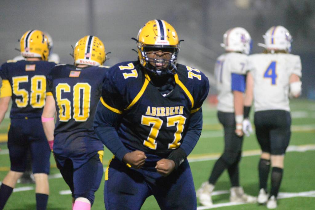 Aberdeen’s defense, led by Sorensen, defensive lineman Jabron Brooks (4.5 sacks) and safety Kale Goings — who had two interceptions against Tumwater last week after returning from a serious leg injury in Week 2 — continued to shut down the Warriors offense through the second half.