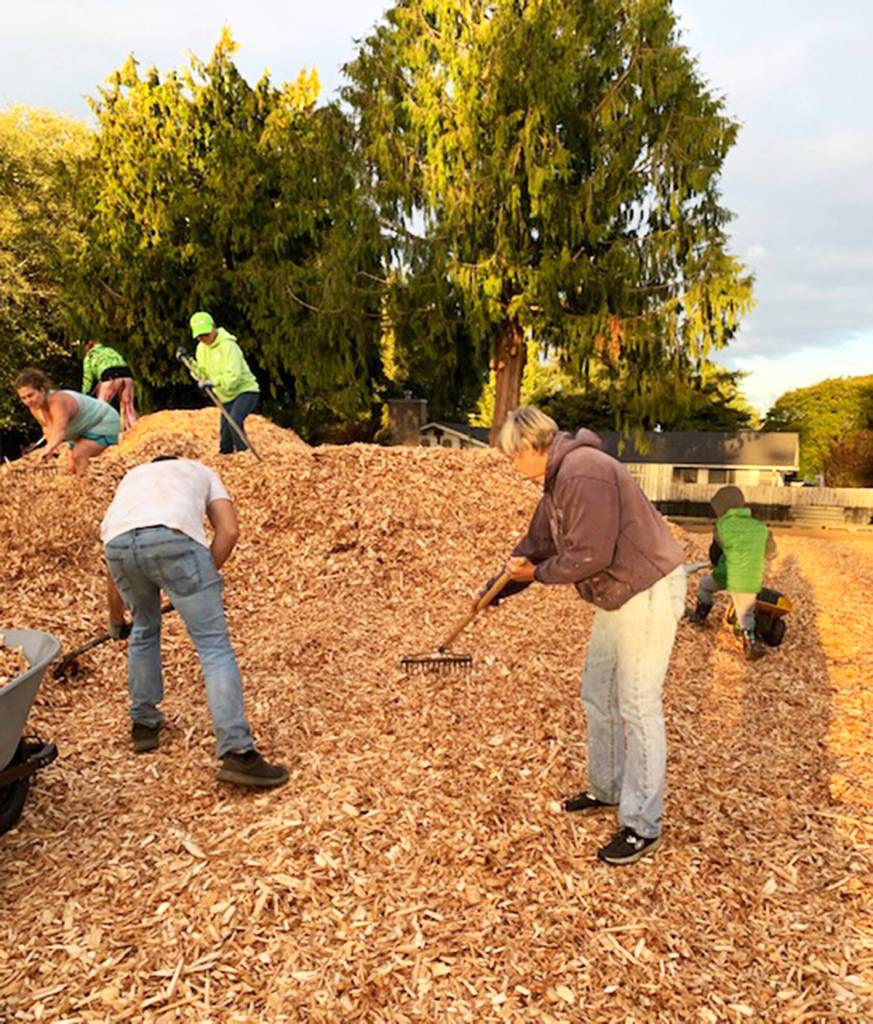 “The dedication and arduous work from the group goes beyond anything I have seen in Grays Harbor,” she said. “We had 14 work parties that took place starting in June to date, coordinating up to two dozen or more volunteers to help landscape, lay borders, rake, rake dirt, picking up sticks, rolling the soil, and spreading two 53-foot chip trucks (full) of chips from Cosmo (Specialty Fibers.)”
