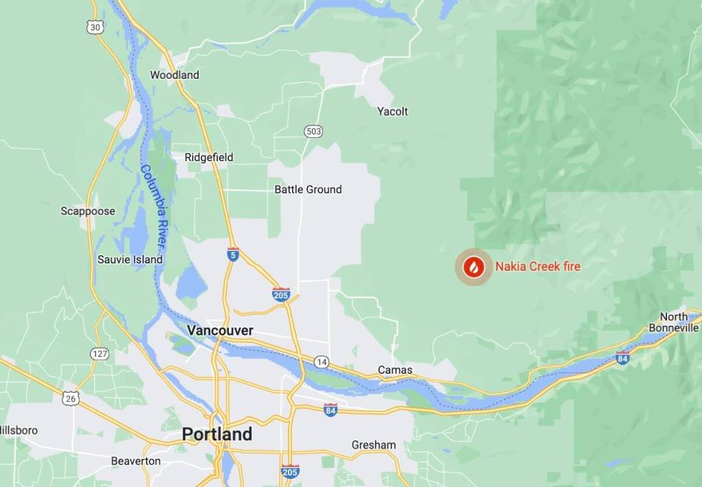 A pair of firefighters from the Montesano Fire Department were forward deployed to help fight the Nakia Creek Fire near Portland after it expanded explosively on Sunday.
