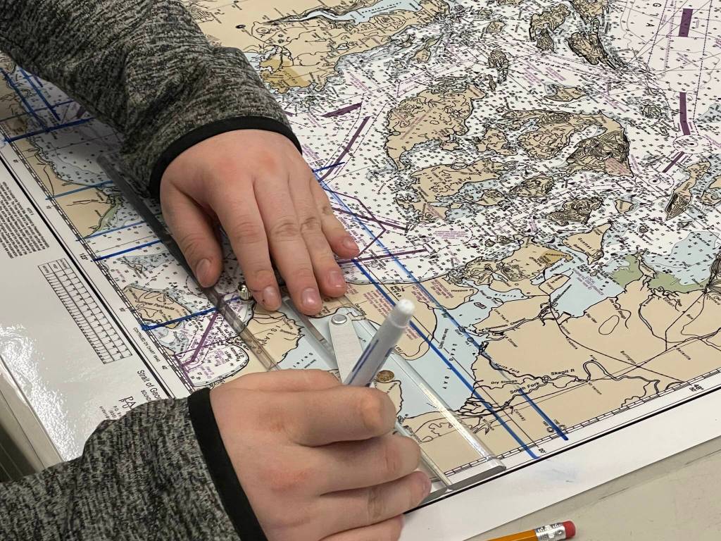 “The content is unlimited. There’s so much to study. There’s the oceanography aspect. There’s learning weather, learning the rules of the road as far as ship traffic. The buoys, the signals. Today, I had them scour that chart. ‘What does that mean? What is that?’” Paul said. “We’re going to get into some maritime history. Next week we’ll start on some chapters about ancient times, how it progressed. I think the most fascinating study would the Polynesians and Micronesians and how they developed what they called wayfinding.”