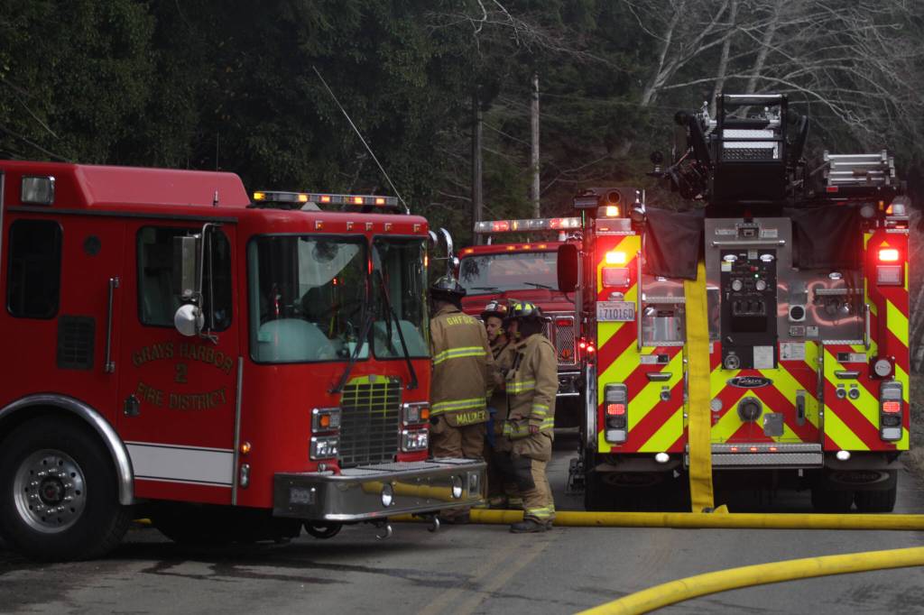 Firefighters from Grays Harbor Fire District 2 and the Aberdeen Fire Department responded Tuesday afternoon to a fire on Aberdeen Lake Road.