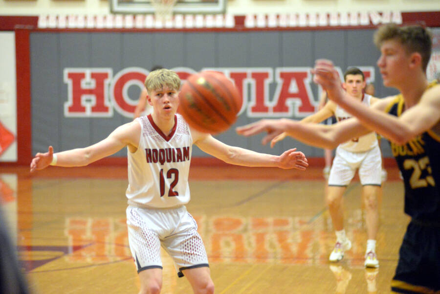 Hoquiam charged right back with an 8-0 run and took a 44-17 lead with junior forward Aiden Butcher scored in the paint off a nifty interior bounce pass by senior center Owen McNeill with 2:16 left in the third.