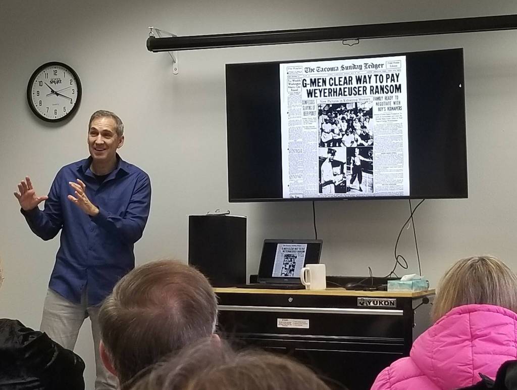 On Saturday, the Elma Timberland Library hosted a meet and greet as well as a book signing with Bryan Johnston, the author of ‘Deep in the Woods: The 1935 Kidnapping of Nine-Year-Old George Weyerhaeuser, Heir to America’s Mightiest Timber Dynasty.’