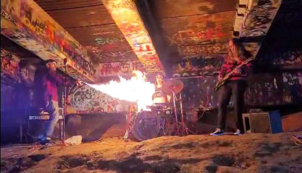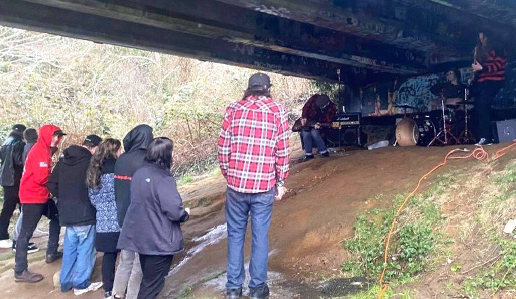 Local band blares under bridge