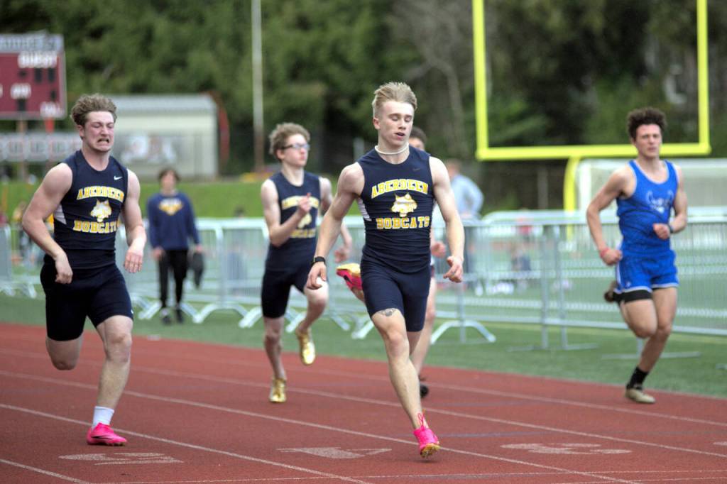 4×100 relay: 1, Aberdeen (Micah Schroeder, Sawyer, Brandon Newcomb, Cordell Roberts), 46.02. 2, Elma (Jackson Schneider, Alaiz Cordova, Jacob Meadows, Elijah Flores), 46.84. 3, Wishkah Valley (Rique Guzman-Gadwa, Matthew Erickson, Boady Dhooghe, Kohl Brandner), 51.37.