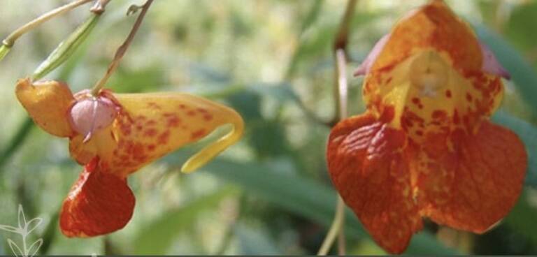 After pollination in spring, jewelweed flowers form capsules, which then burst open and propel seeds short distances.