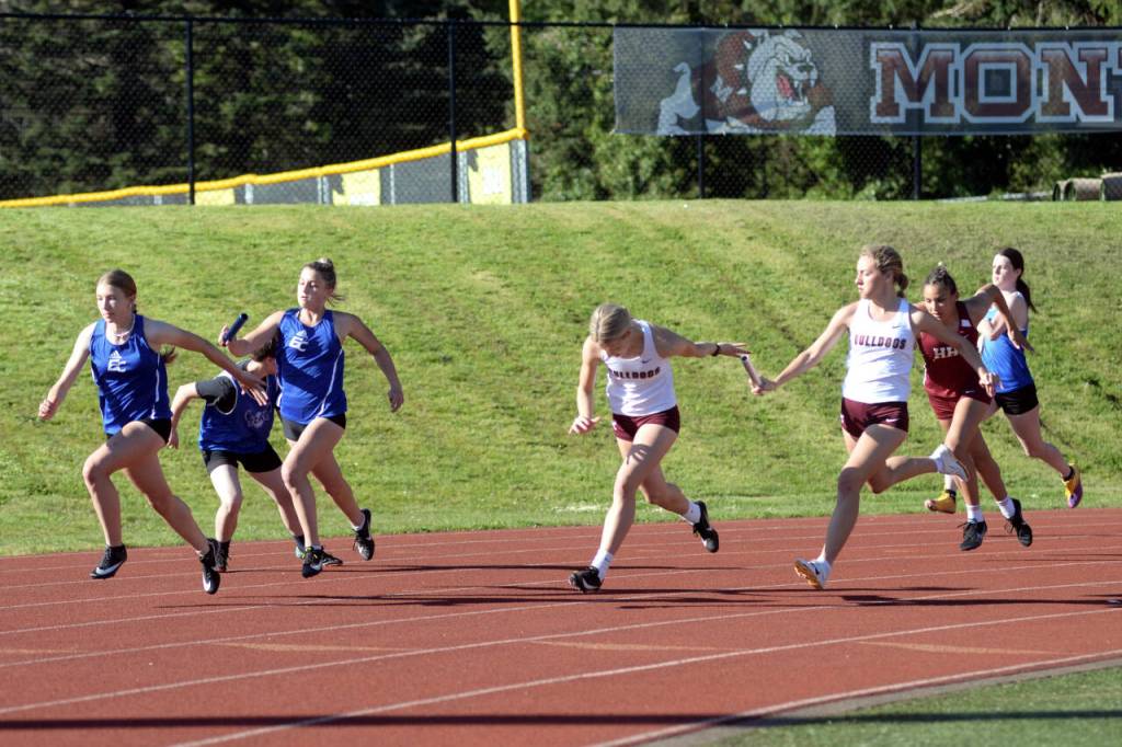 4×200 relay: 1, Montesano (McElroy, Eaton, Olson, Causey), 1:51.93. 2, Eatonville (Gendreau, Hanson, Kralik, Roulst), 1:52.74. 3, Hoquiam (Lund, McElliott, Valeria Aguilar Arana, Brodhead), 1:52.76.