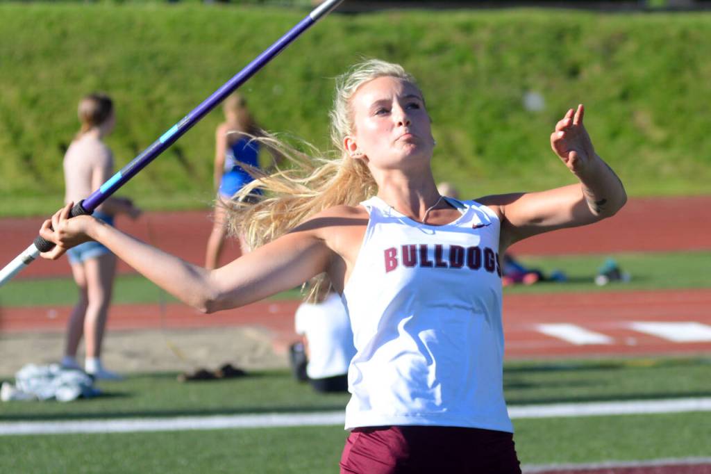 Javelin: 1, Blocker, Eatonville, 114-9. 2, Ashlyn Devereaux, Montesano, 114-3. 3, Addie Winter, Montesano, 112-3 PR.