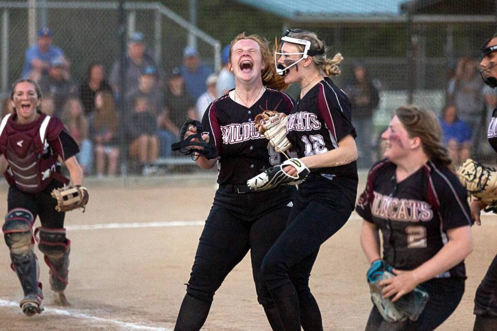 Adna’s Margarite Humphrey stepped to the plate with two outs in the seventh and hit a sharp ground ball to Rosander at first. Rosander got a glove on the ball to knock it down, shuffled to her right to pick up the ball then stepped on first to end the game and give the Wildcats its first softball district title in school history.