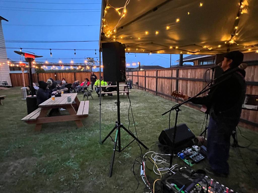 Clinton “Dogger” Mullins plays in front of a small crowd Friday night at Red Cedar at the Vasa, in Hoquiam. The crowd, appearing smaller than it was throughout the night, was much larger at its apex as people enjoyed the music and cold pints the beer bar serves. But, for the people who braved the decreasing temperatures, they were the first lucky few to hear tracks from Mullins’ new album “Atta Bomb.” On Monday, “Dogger,” as he’s known, finished tracking the album, which made him “super stoked.”