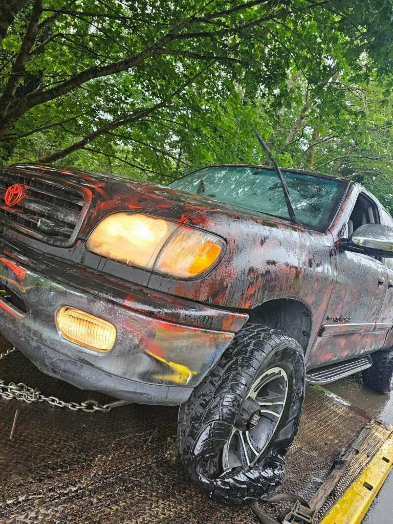 The suspect hit a pair of spike strips set up by personnel from the Grays Harbor County Sheriff’s Office near Montesano, Weatherwax said, and came to a stop east of Montesano. The suspect attempted to flee, and was taken down and detained by Trooper Joshua Magerstaedt, Weatherwax said.