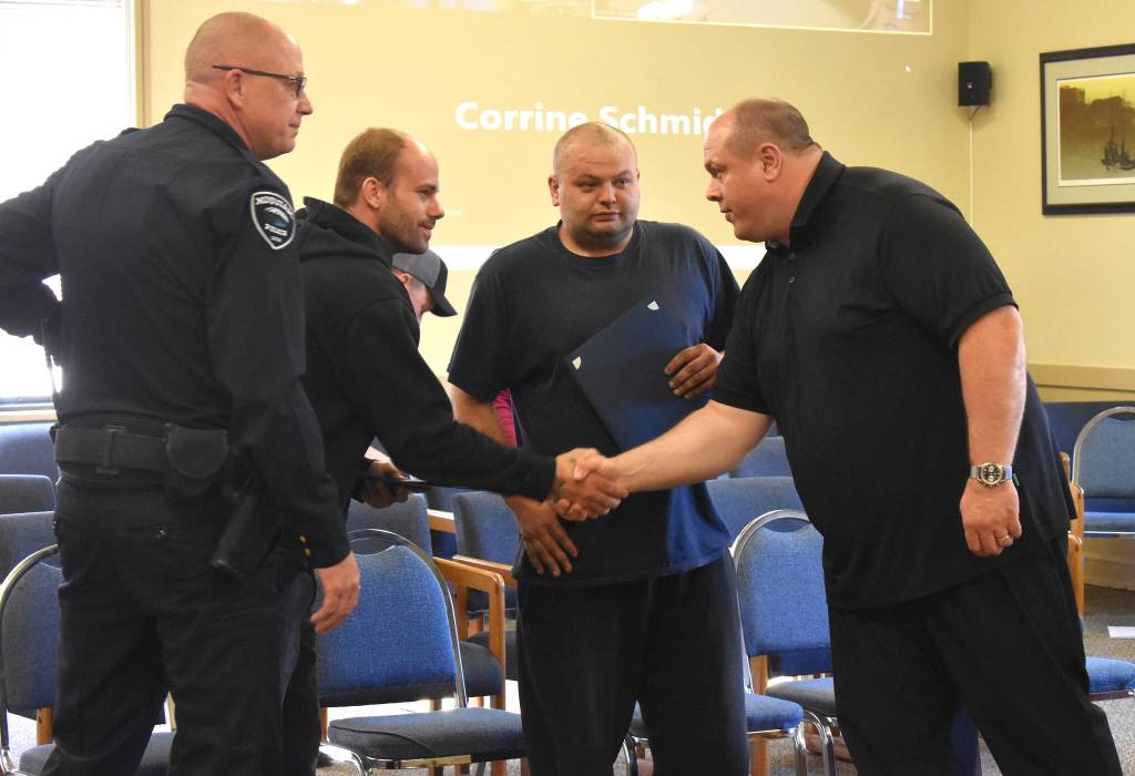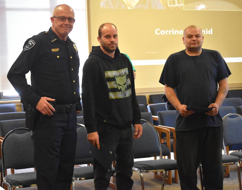 Inside the council chambers, Strong read the citizen commendations for Alderton and Olson, which described the initial incident, the service call challenges law enforcement faces and the call officers hope not to get.