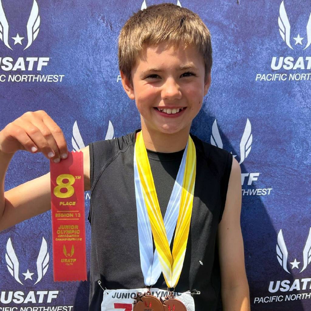 Brayden, 11, qualified in three events, placing eighth in the 80-meter hurdles (17.03), fifth in the high jump (1.20m), and earned a fourth-place finish in the pentathlon (80m hurdles, shot put, high jump, long jump, 1500m) with 1,137 points.