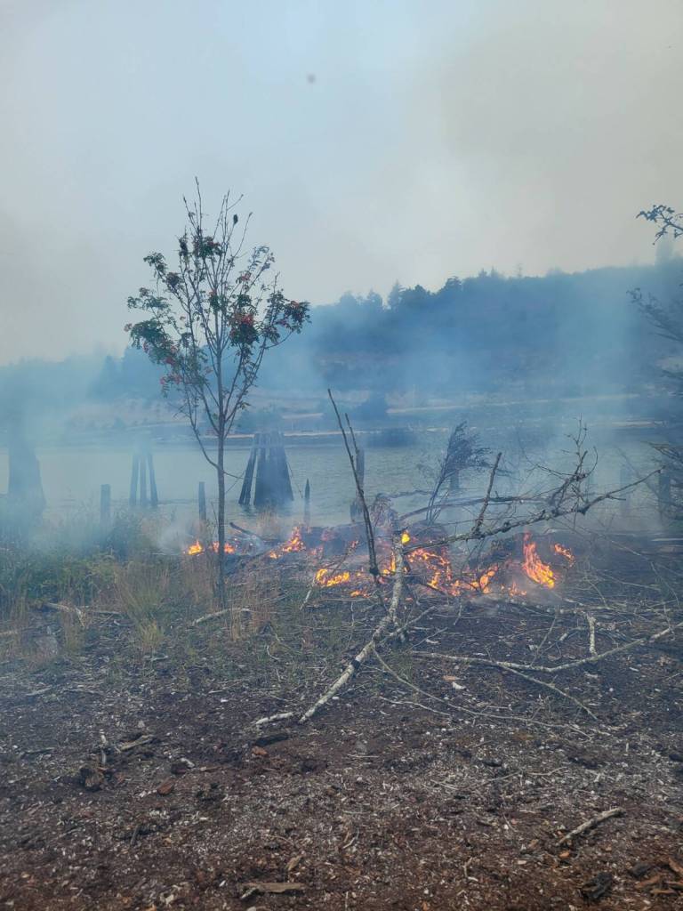 The fire was in the grass and in some remnants from former timber industry activity, said Chief Dave Golding of the AFD. Firefighters and employees from a nearby company had to dig to extinguish some spots that had gotten into the spalts in the area.