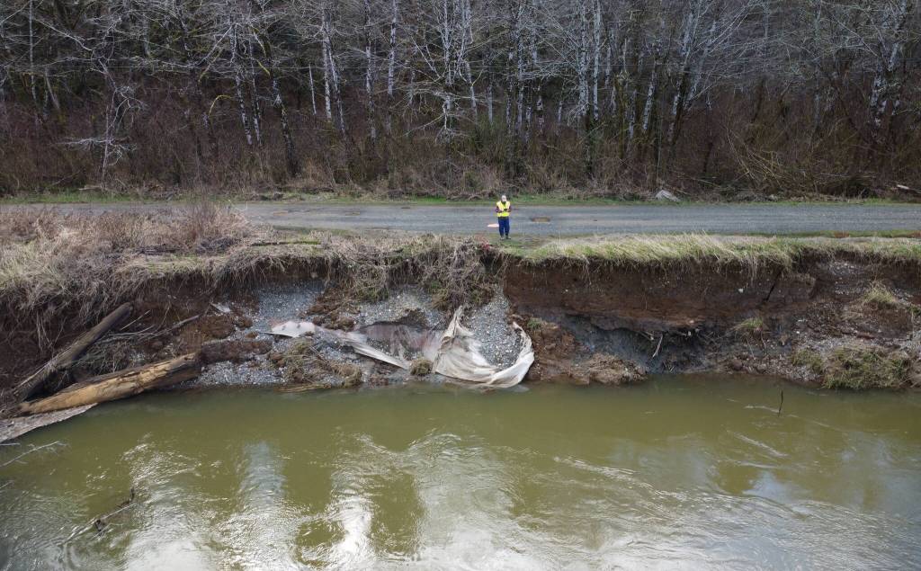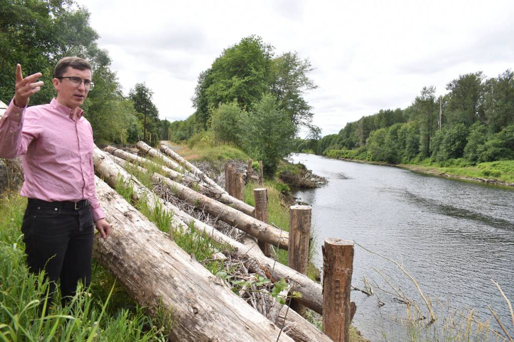But the willows stood no chance against the rain of two winters ago. Near-record flooding caused damage throughout the Chehalis Basin, and at the Satsop park, high water cut away more than 15 feet of bank, nearly wiping away the road’s buffer.