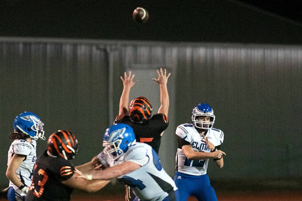 “We were playing pretty good in the beginning, then we got a little tired and started making mental mistakes that stalled our drives a little bit,” Elma co-head coach Larry Raynes said. “We had chances to open it up a little more, we just weren’t able to connect. … There was definitely some first-game nerves and a lot of players seeing the Friday night speed for the first time.”