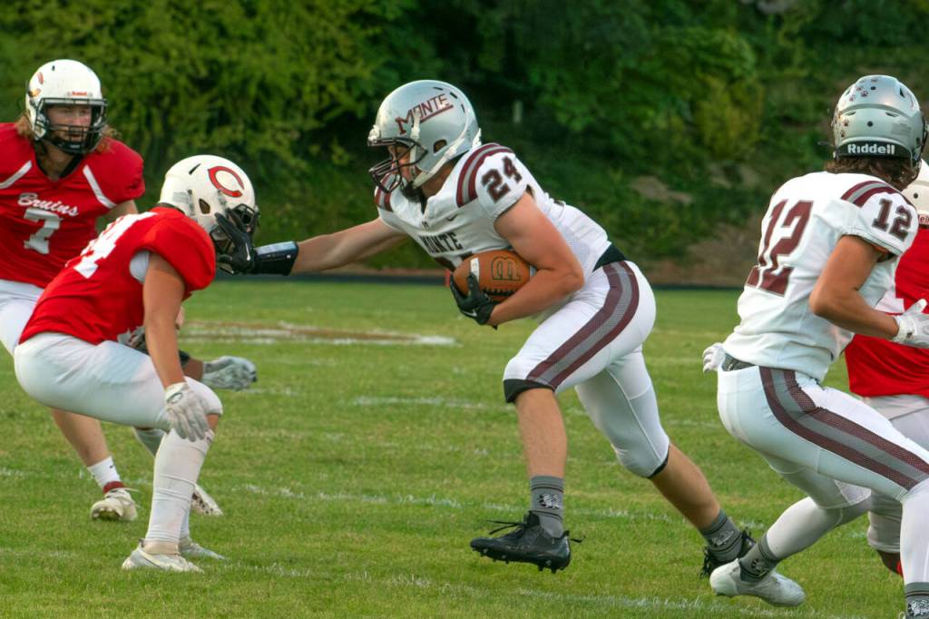 Rushing leaders: M – Bodwell 18-193, Wilson 11-109, Perry 6-56.