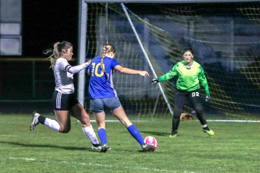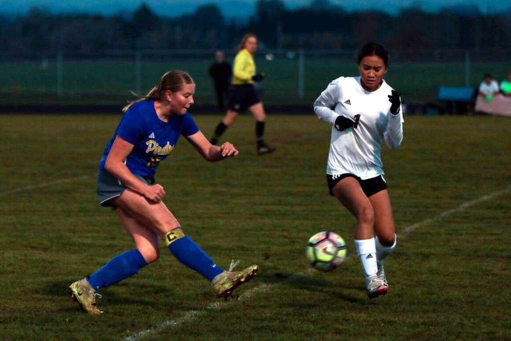 Raymond-South Bend had a golden opportunity to tie the game in the 65th minute with a penalty kick, but Adna keeper Jordanne Moon made the save to preserve the Pirates’ 2-1 lead.
