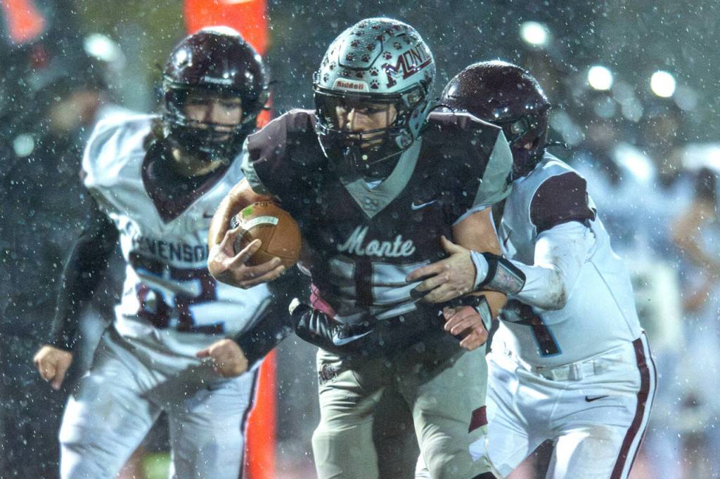 Monte struck again a few plays later when linebacker Mason Rasmussen jumped a route and leaped over a Stevenson receiver to intercept a pass from quarterback Kacen Bach. Rasmussen raced 26 yards into the end zone for Monte’s third touchdown in 5:15 of game time.