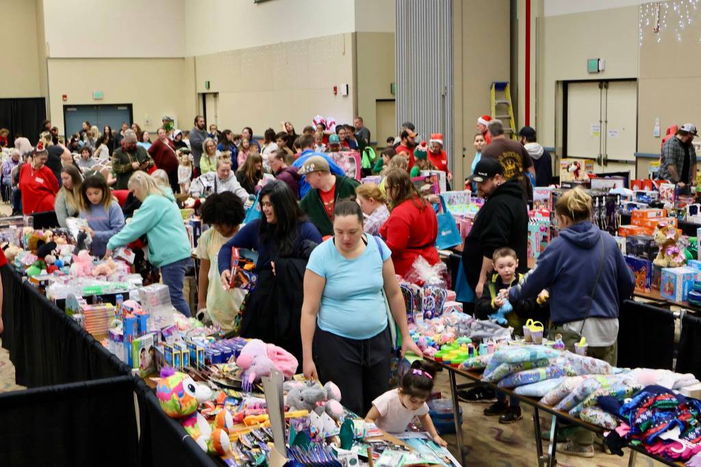 Donations from stores and groups across Ocean Shores and beyond help fund the event, Emmons said, while members of the group often snag gifts during times like Black Friday or in the days after Christmas to make donations go further. From businesses like Ace Hardware donating batteries, to the local Eagles aerie helping staff the event, to residents baking hundreds of cookies, it’s a community effort, Emmons said.