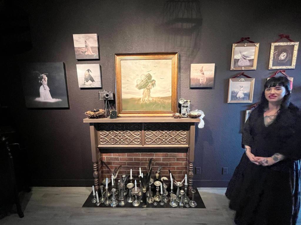 The dark, forest green walls inside her upstairs gallery are a real contrast from the walls throughout the Clovis Building at 740 Point Brown Ave. NE Suite H. It’s a little unusual to see darkly painted walls in an art gallery since the traditional look is light-colored walls so the art stands out. But in Black’s studio, which started from bare walls and none of the character she and her husband Junior have brought to the space, the dark paint is just right.