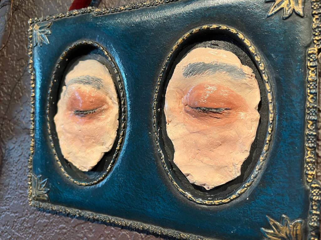 A notable sight amongst the art in that formal gallery is the pair of eyes on the right wall. Black credits Scott Hahn, a local sculpting artist, for molding Black’s own eyes.