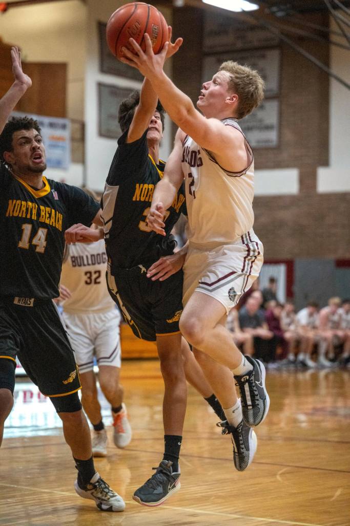 Scoring: North Beach – J. Charley 6, Smith 4, Hovland 4, K. Charley 4, Lauderdale 4, Johnson 3. Montesano – Peterson 12, Bodwell 11, Taylor 11, Crites 9, Chan 6, Damasiewicz 6, Dowles 4, Wilson 2, Lovell 2.