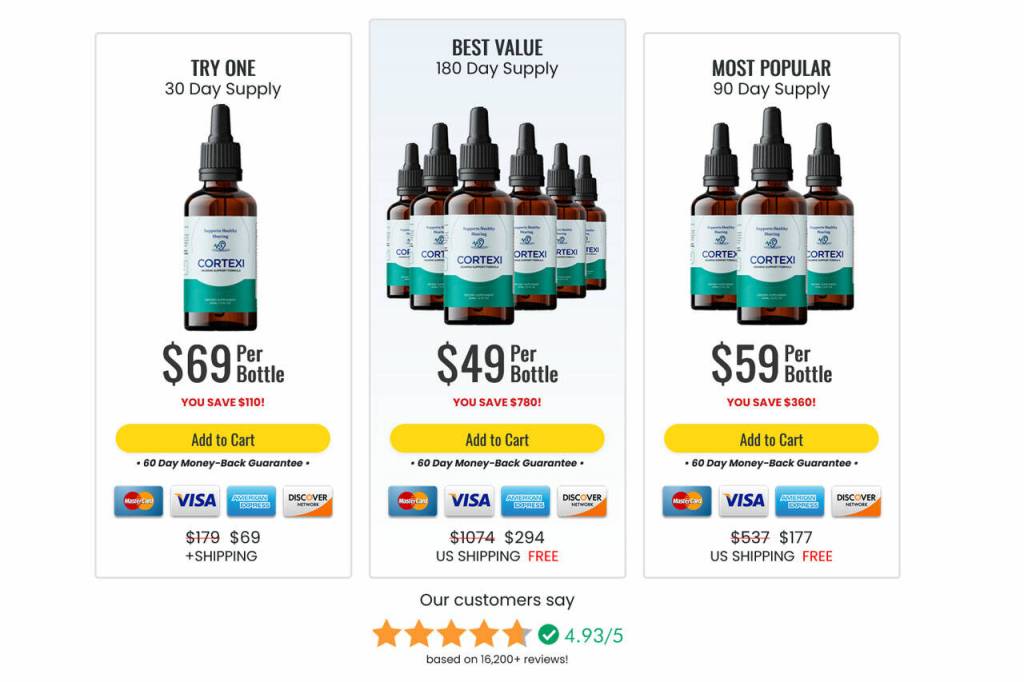 By choosing one of the discounted packages, you not only save money but also ensure that you have an ample supply of Cortexi to consistently support your hearing and energy levels over an extended period.