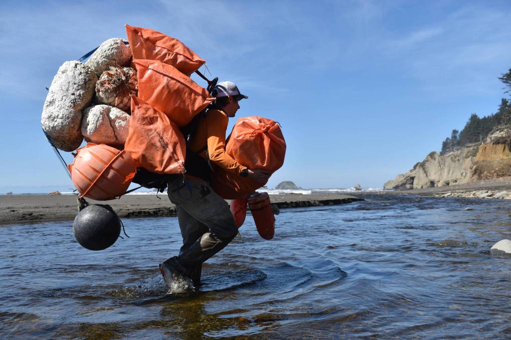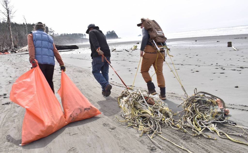 A group of volunteers combed remote beaches on the Quinault Indian Reservation for two days over Easter weekend, bagging and hauling away nearly 30-cubic-yards of marine debris over the course of two days.