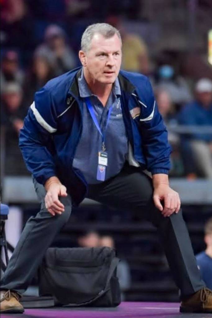 SUBMITTED PHOTO Grays Harbor College women’s wrestling head coach Kevin Pine, seen here in a file photo, guided the Chokers to an NCWA national championship this season. Pine tendered his resignation on Monday.