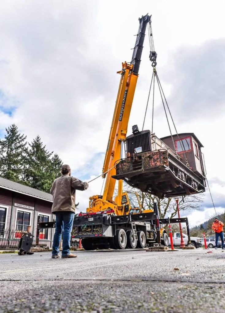 The historic mode of transportation — built in 1925 — is the newest addition to PRLM’s collection. It took a lot to get it to Aberdeen. The locomotive needed a 40-ton and a 60-ton crane, because they found out the 40-ton crane wasn’t strong enough. They needed more power, and they found success lifting it with the 60-ton crane instead.