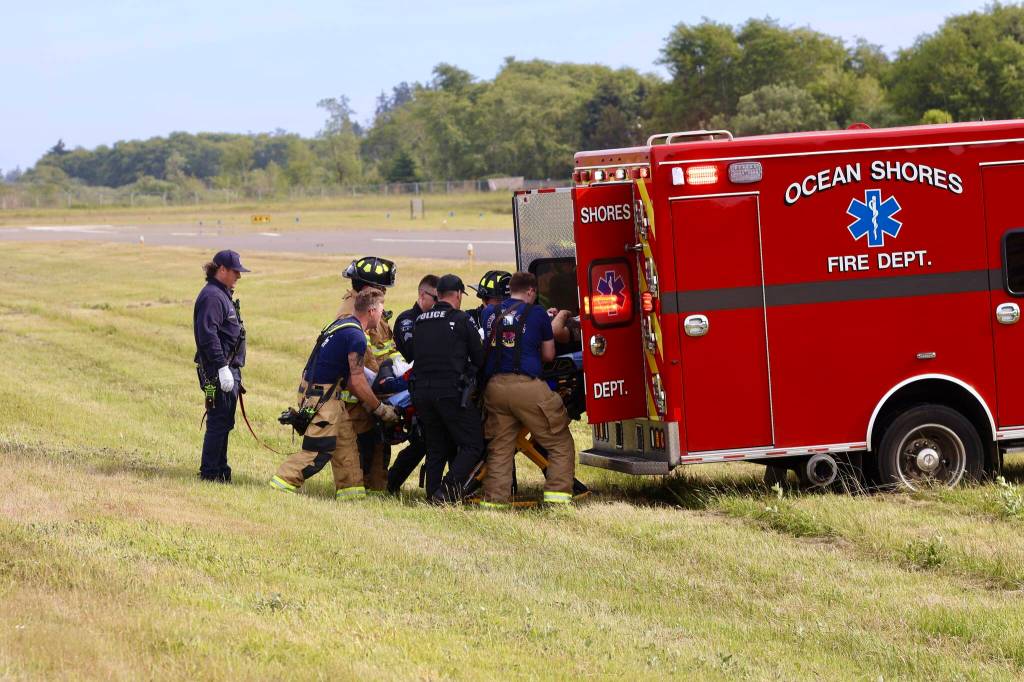 Ocean Shores Fire Department Assistant Chief Mike Mandella confirmed that the small aircraft had two passengers, both of whom were injured in the crash. The female passenger was in critical condition when fire, police and residents arrived on-scene; firefighters were able to remove her from the crash, stabilize her, and hand her off to Life Flight aircrew for medevac to Harborview Medical Center in Seattle. The man was extricated from the wreck and transported to Harbor Regional Health for injuries, Mandella said.