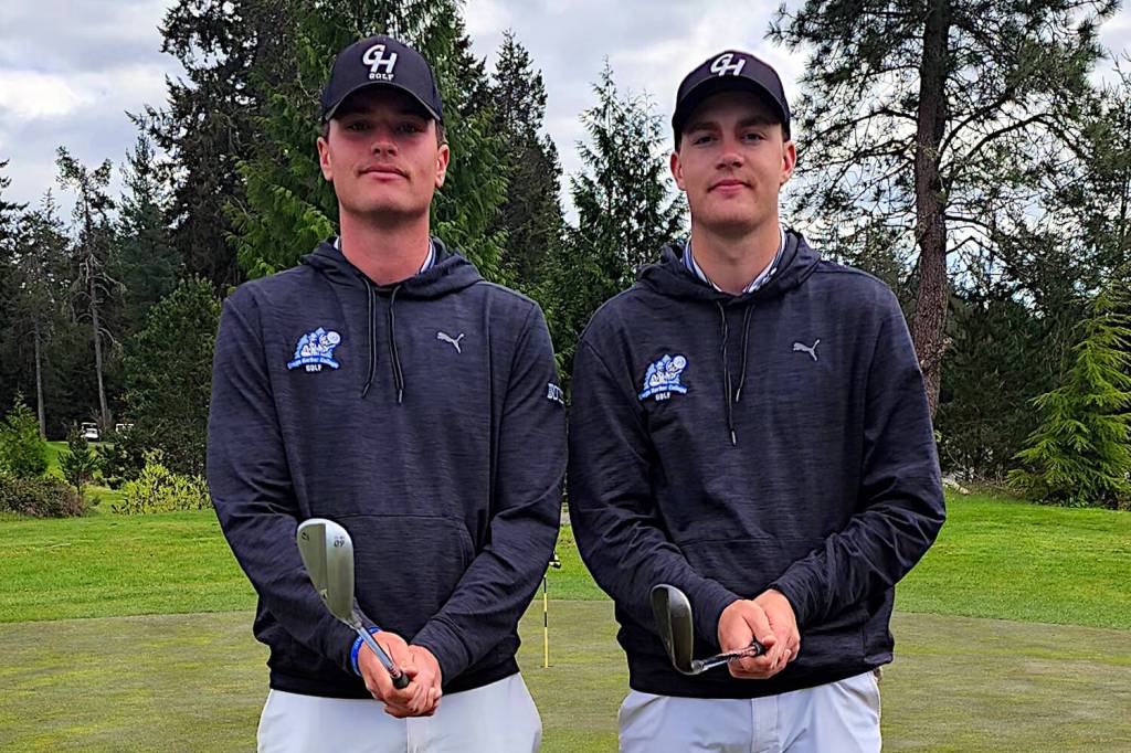 Grays Harbor College golfers Cole (left) and Brett Wasson pose for a photo during a NWAC League Match in April at Port Orchard. The college decided to suspend the men’s golf and men’s wrestling programs on Monday.